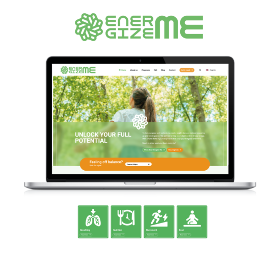 Voor Energize-Me ontwikkelden we een dynamisch ontwerpconcept waarin de E en M samen een draaiend rad vormen – een krachtig symbool voor voortdurende energie, balans en zelfsturing. Het rad verbeeldt hoe alles in het lichaam en leven met elkaar verbonden is, en hoe de beweging steeds opnieuw vanuit jezelf vertrekt. De visuele stijl sluit naadloos aan bij de kern van het merk: jij bent je eigen motor. Vanuit die gedachte ontwierpen we een identiteit die niet alleen helder en professioneel oogt, maar ook energie uitstraalt – in lijn, kleur en ritme.