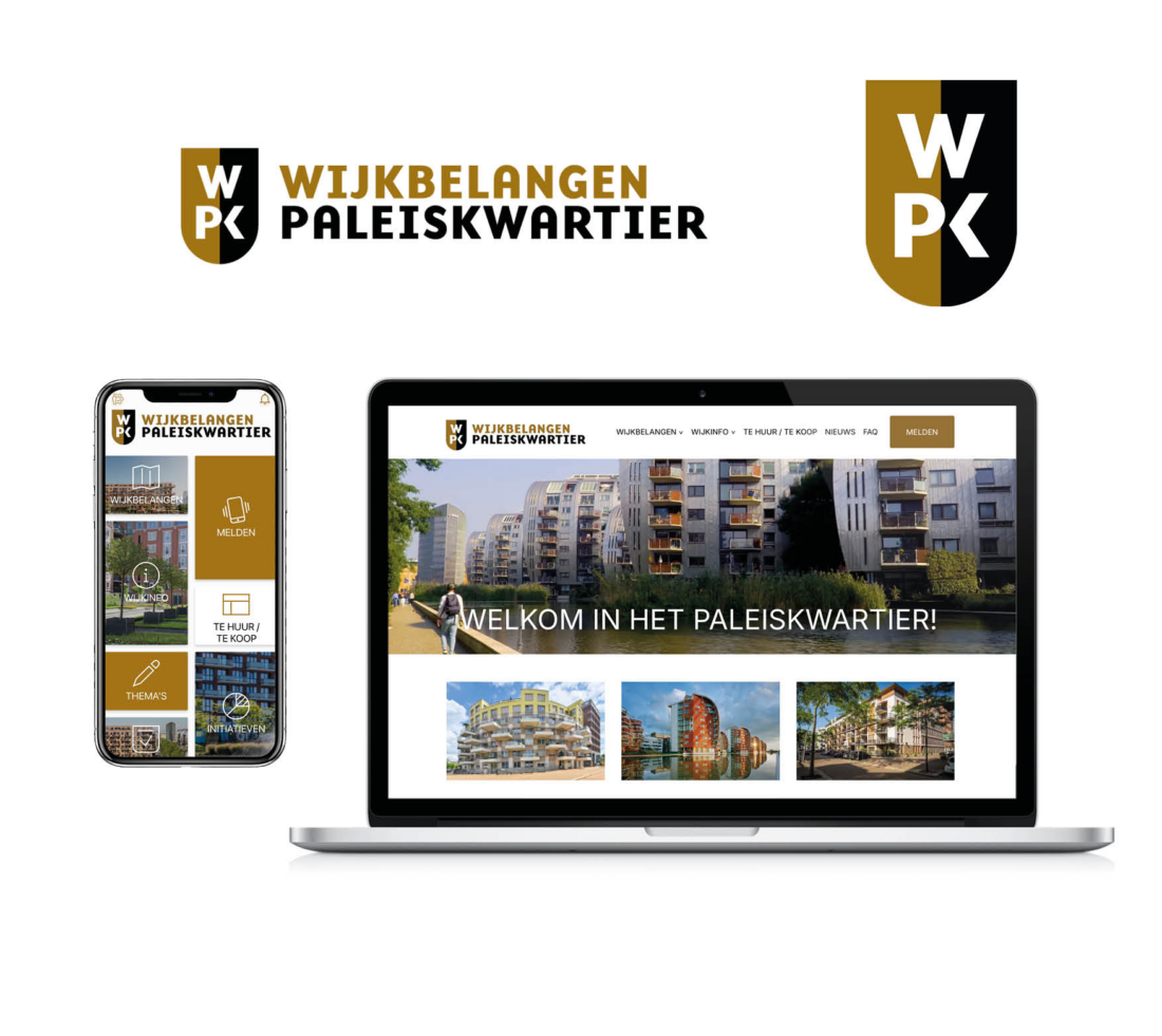 Een nieuwe corporate identity voor Wijkbelangen Paleiskwartier (WPK): een nieuw logo, vormgegeven als een schild of vaantje, staat symbool voor deze wijk: een moderne interpretatie van een middeleeuwse banier dat ooit steden, families en koninkrijken vertegenwoordigde.